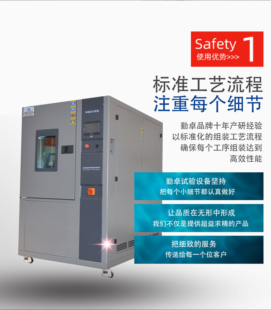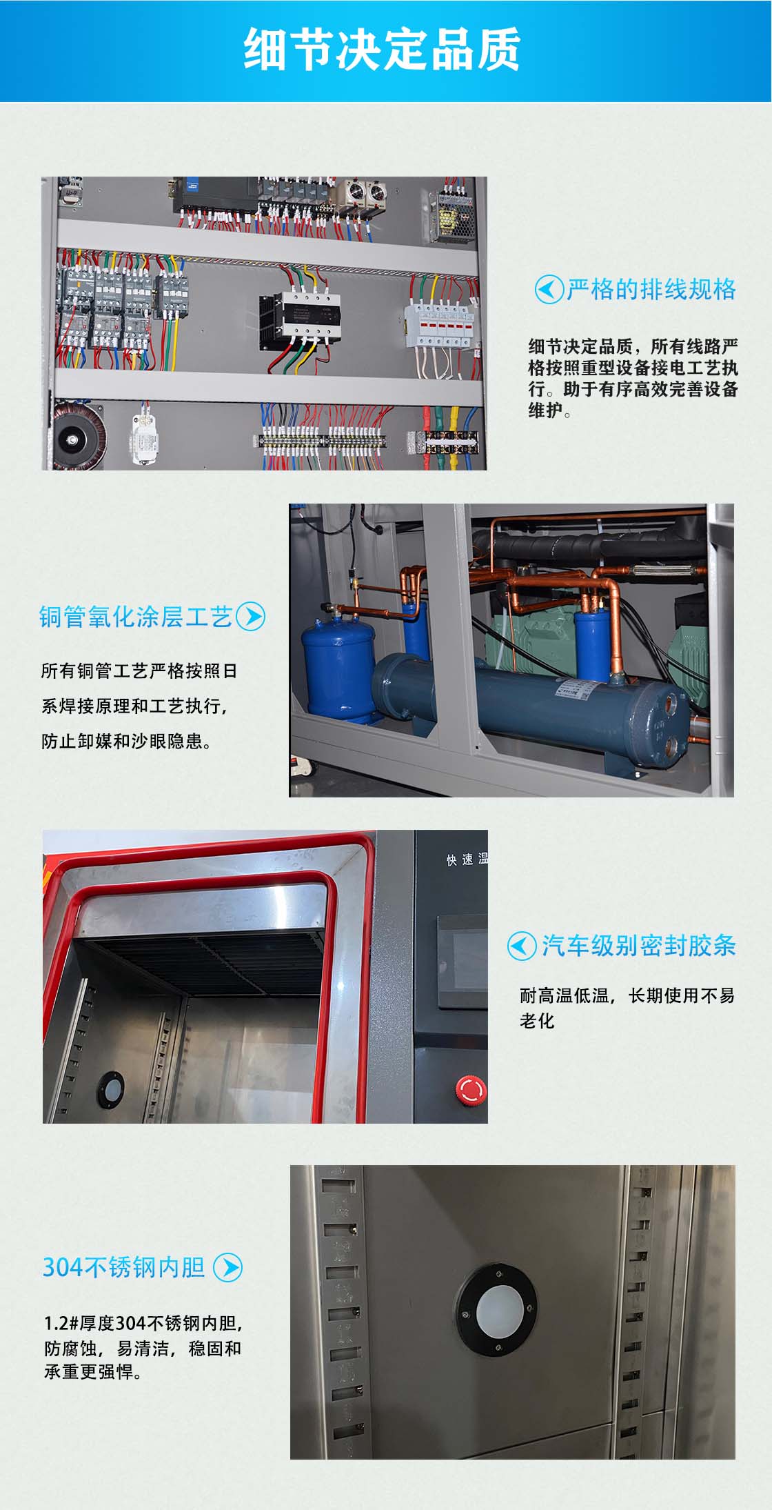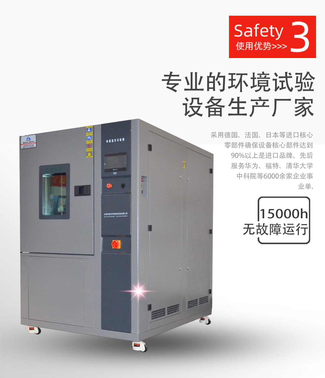 快速溫變試驗(yàn)箱結(jié)構(gòu)設(shè)計(jì)先進(jìn)合理,配套產(chǎn)品和功能元器件具有國際先進(jìn)水平,能夠適 應(yīng)長期、穩(wěn)定、安全、可靠的生產(chǎn)需求。能夠滿足用戶為從事上述用途的加工生產(chǎn)要 求,且使用、操作、維修方便,使用壽命長,造型美觀,有良好的用戶界面,使用戶的操作和監(jiān)測都更加簡單和直觀。